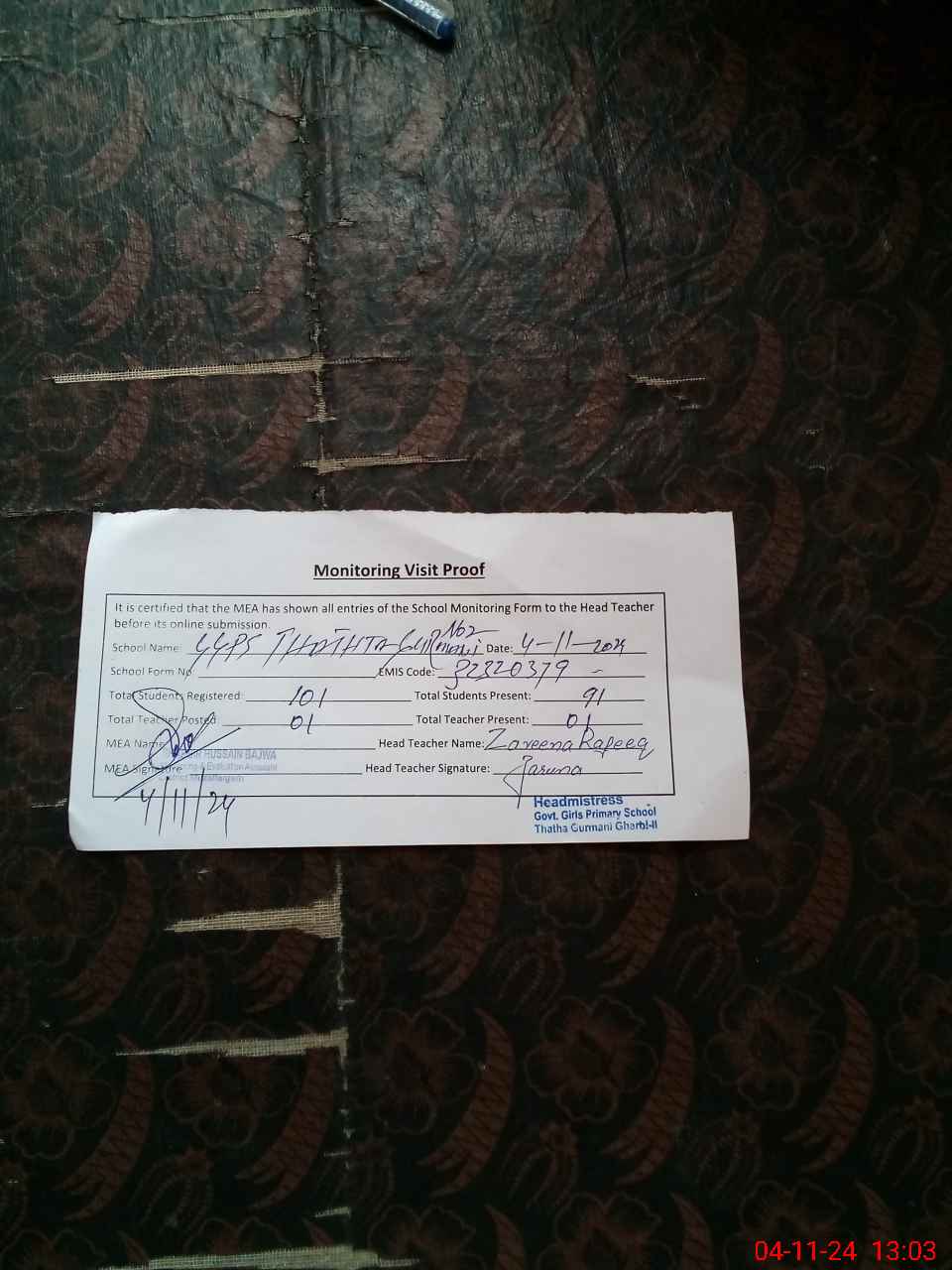 | EMIS Code: 32320379 | Name of School: GGPS THATHA GORMANI NO. 2 | |||