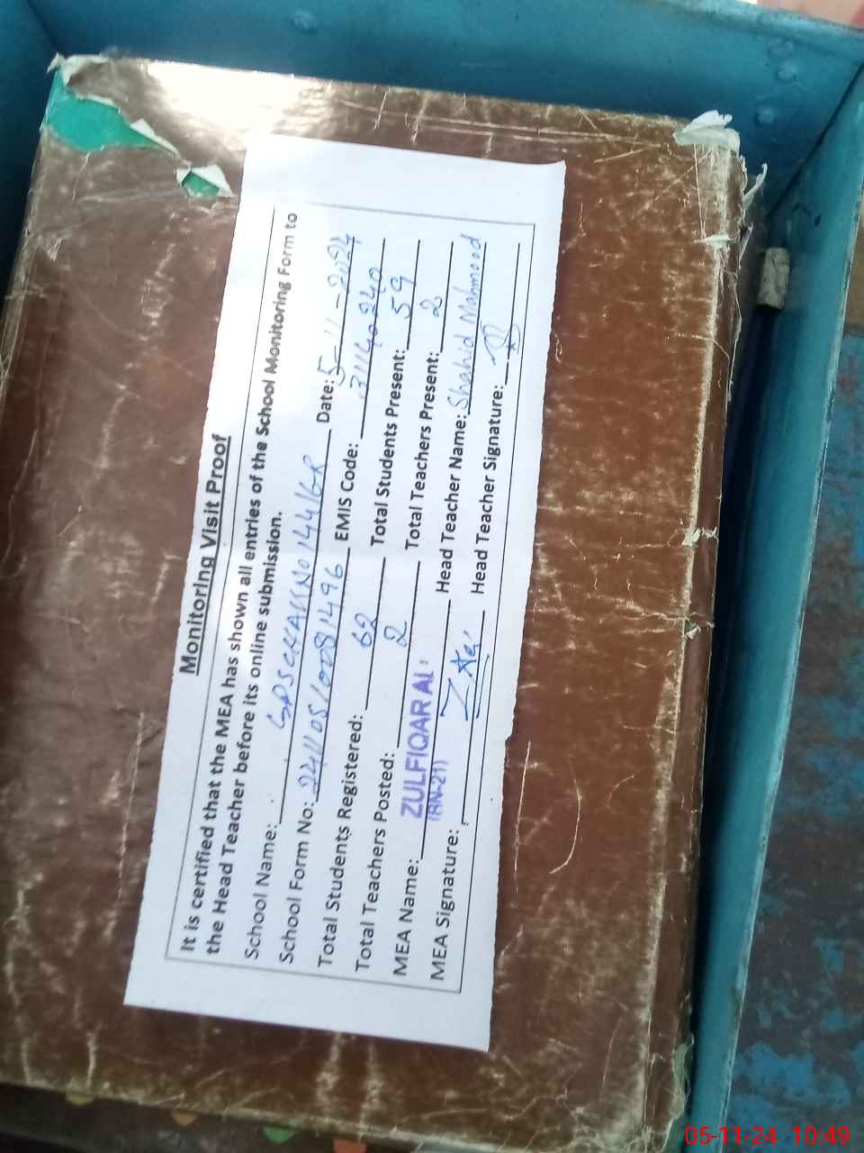 | Attendance Register | Head Teacher | MEA with School | Visit Proof |