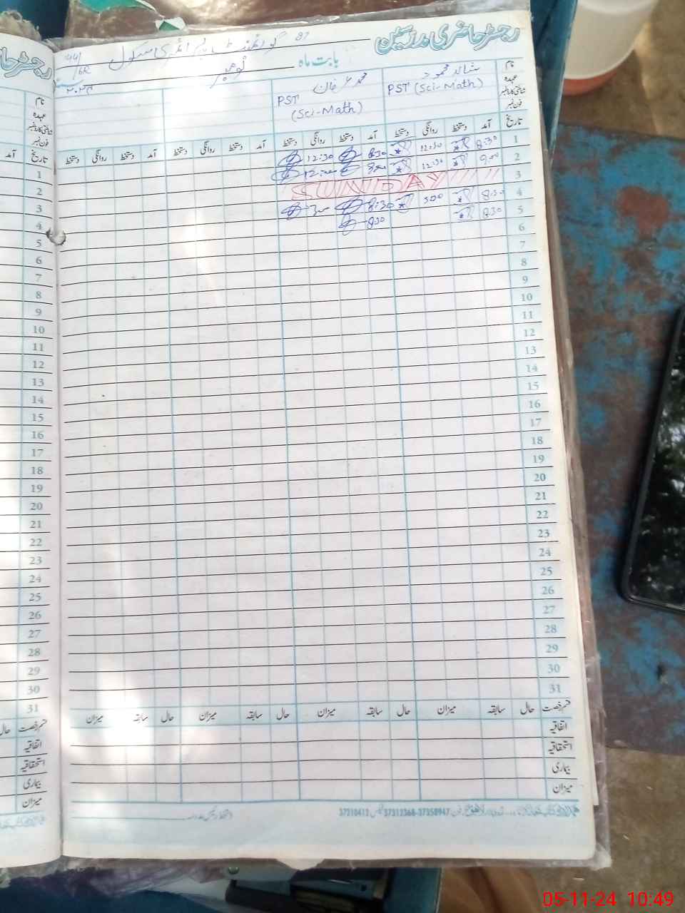 | CNIC | Full Name | Designation | R/C | Absence During Last Calender Month |