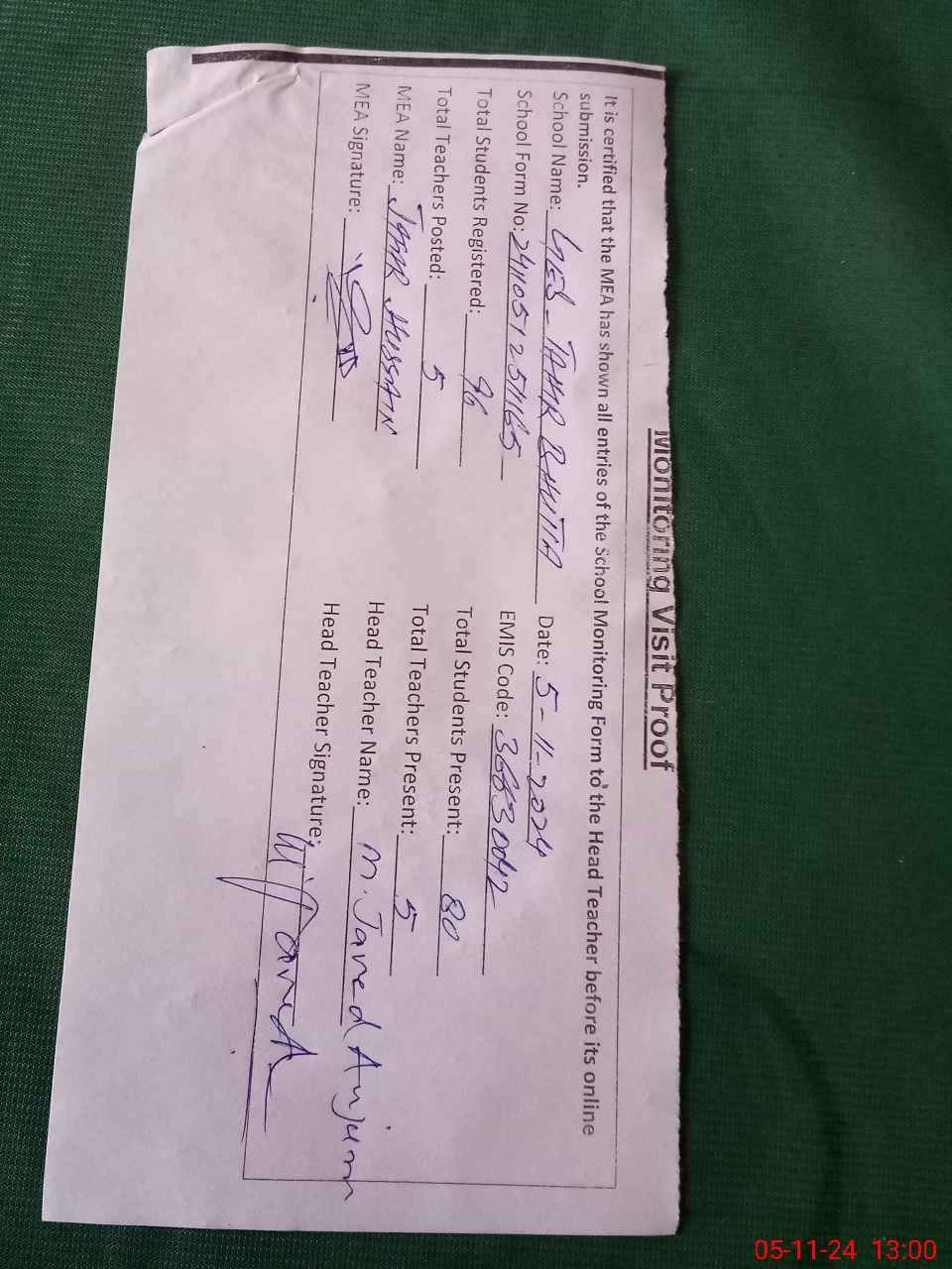 | Certified that this School was Inspected by the Undersigned MEA/DMO Today and the Information Stated Above is as Per Record. | |||||