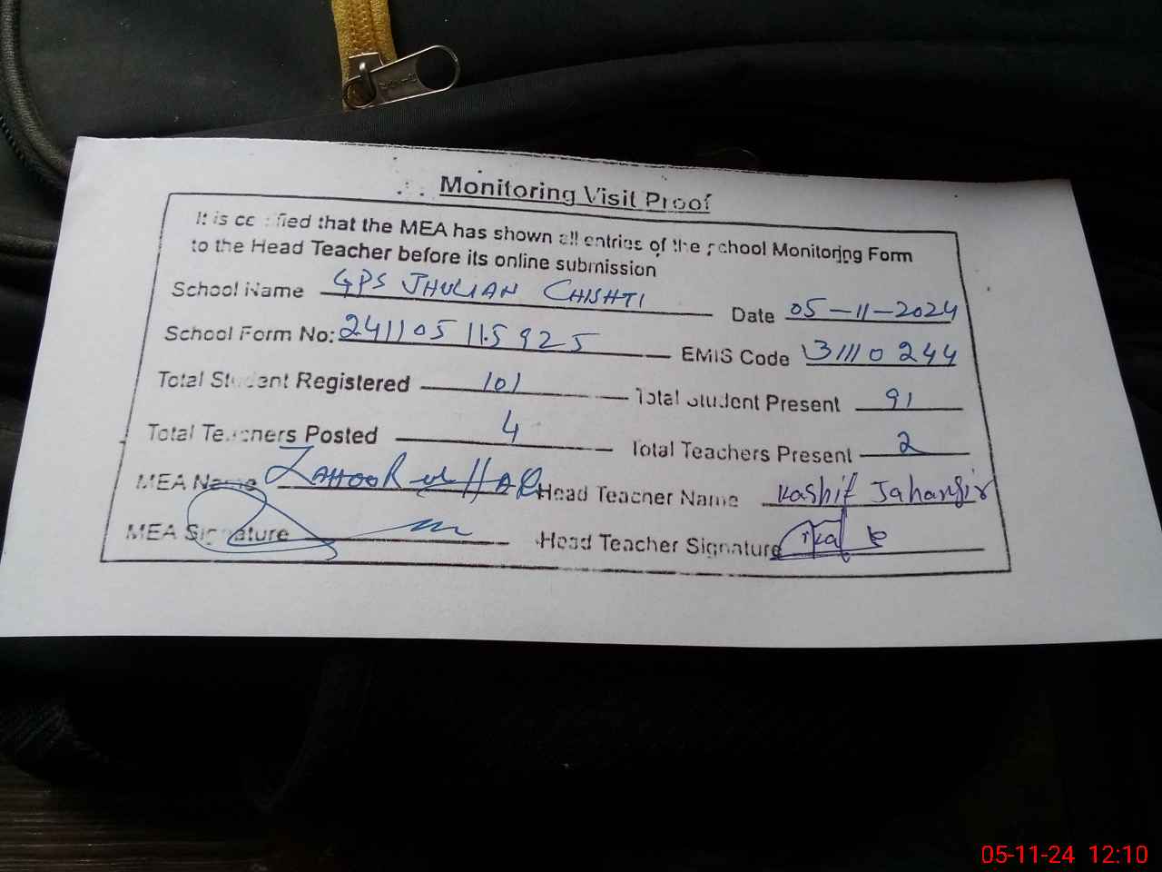 | EMIS Code: 31110244 | Name of School: GPS JHULLAN CHISHTI | |||