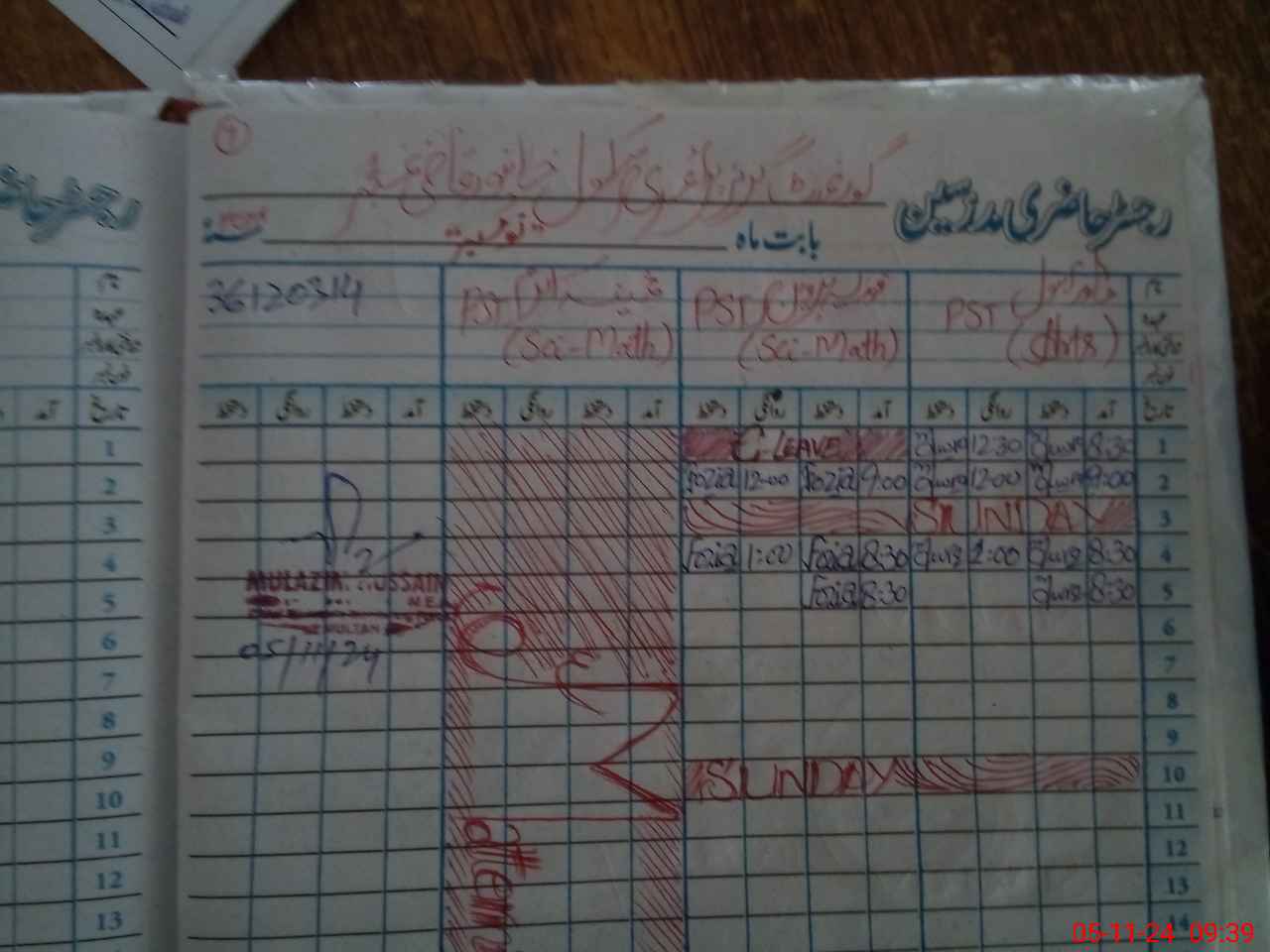 | CNIC | Full Name | Designation | R/C | Absence During Last Calender Month |