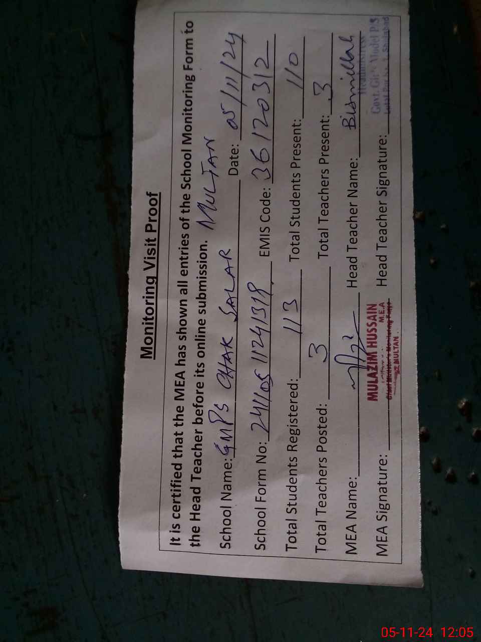 | EMIS Code: 36120312 | Name of School: GMPS CHAK SALAR | |||
