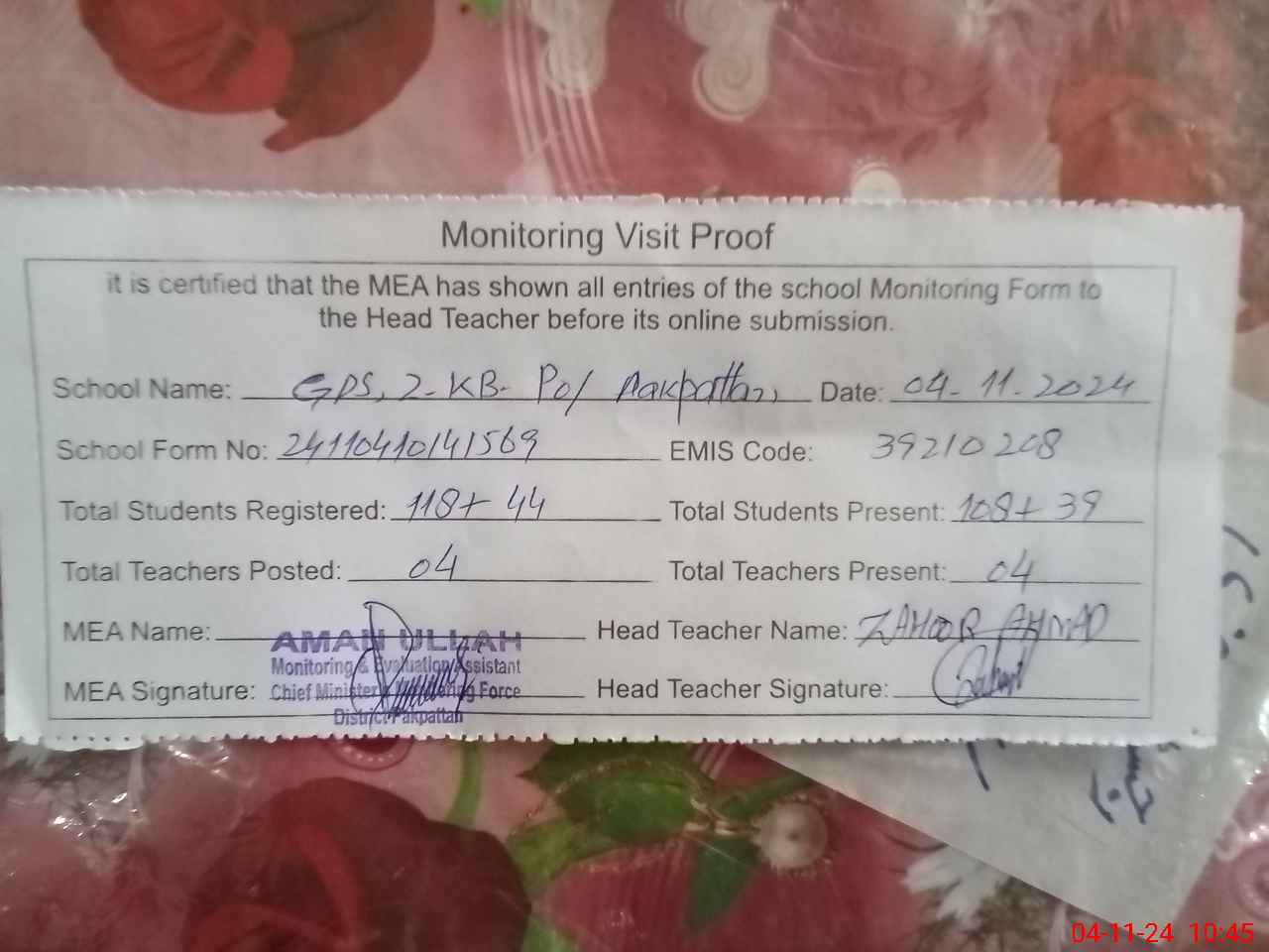 | EMIS Code: 39210208 | Name of School: GPS 2 KB PO PAKPATTAN | |||