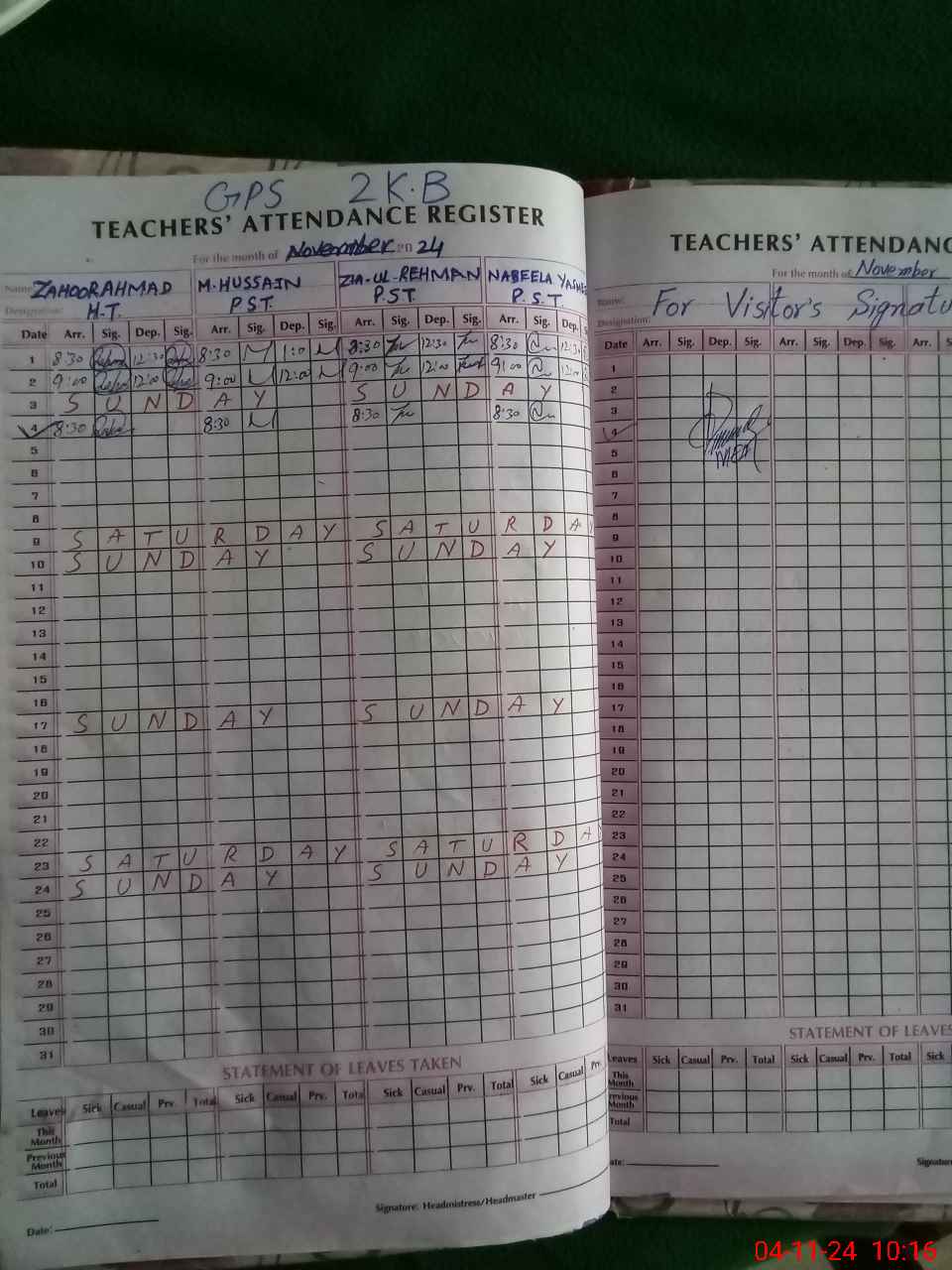 | Name: Za**** Ah**** Designation: (School Headmaster's/Headmistress's) PST Phone/Cell Number: 03**** |