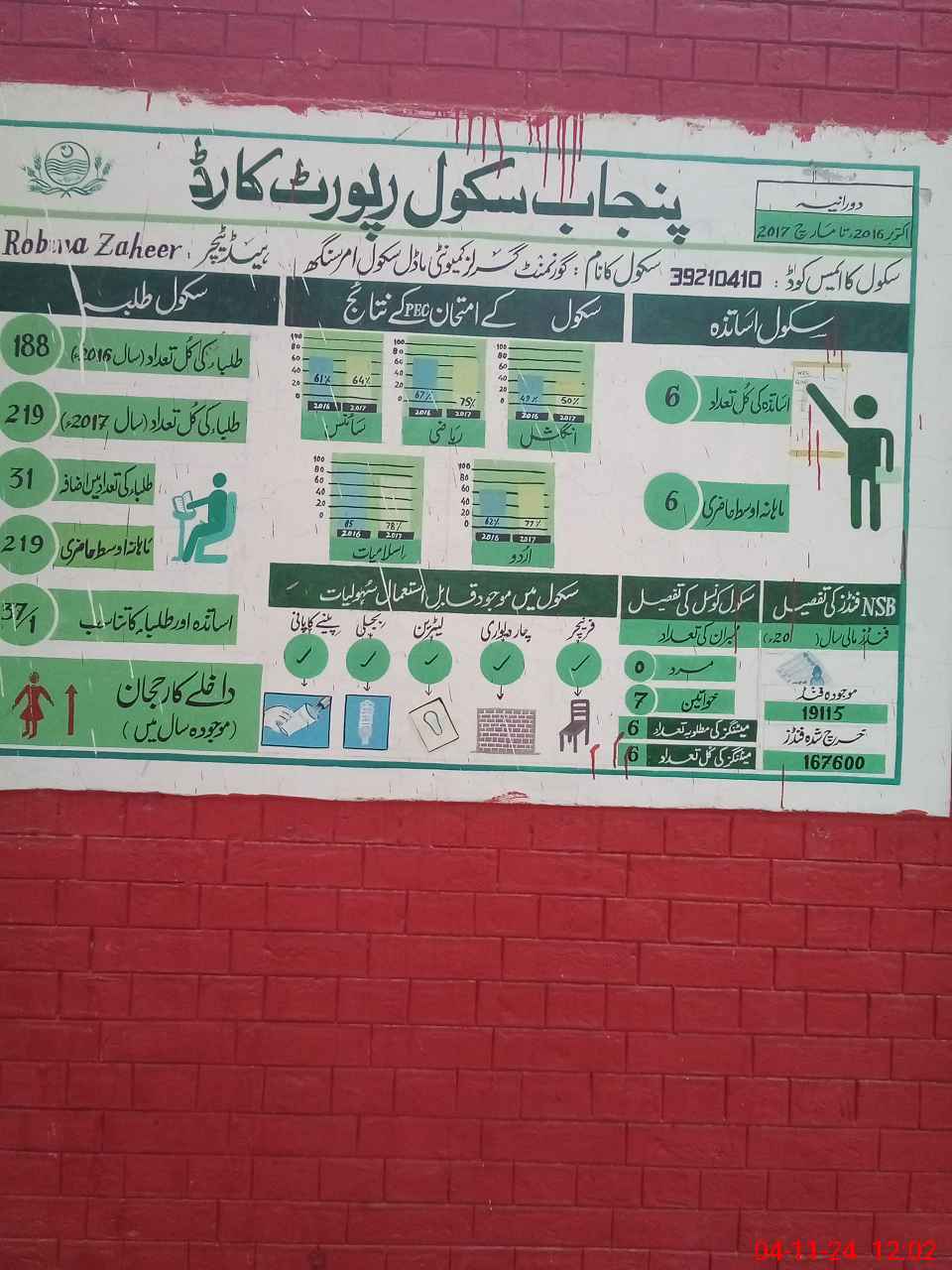 | District: PAKPATTAN | Tehsil: PAKPATTAN | Markaz: PAKPATTAN 4 - FEMALE | Level: Primary | |