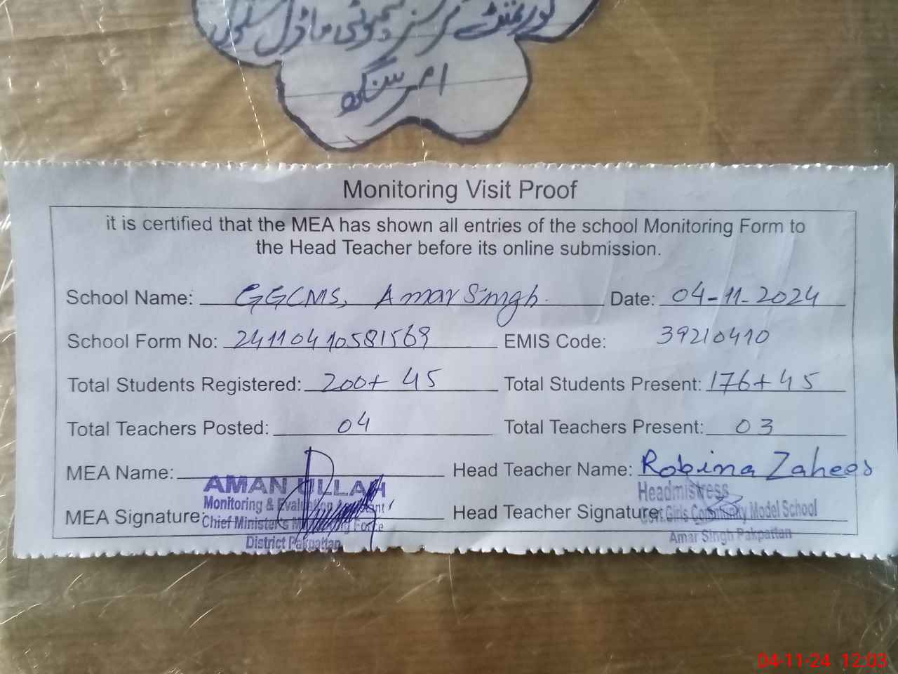 | EMIS Code: 39210410 | Name of School: GGCMS AMAR SINGH | |||