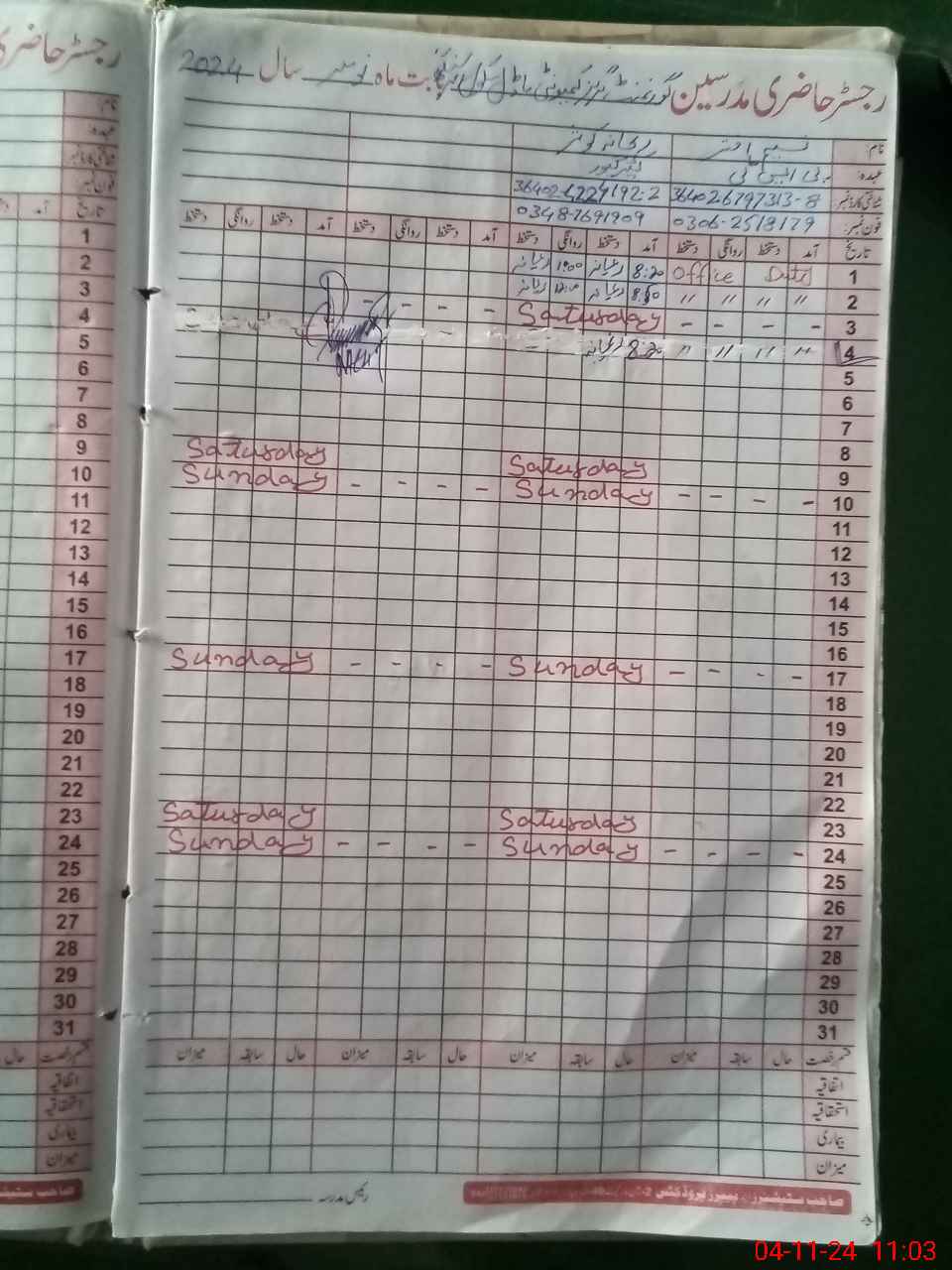| Name: RO**** ZA**** Designation: (School Headmaster's/Headmistress's) SST (GENERAL) Phone/Cell Number: 03**** |