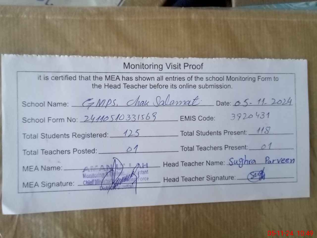 | EMIS Code: 39210431 | Name of School: GMPS CHAK SALAMAT | |||