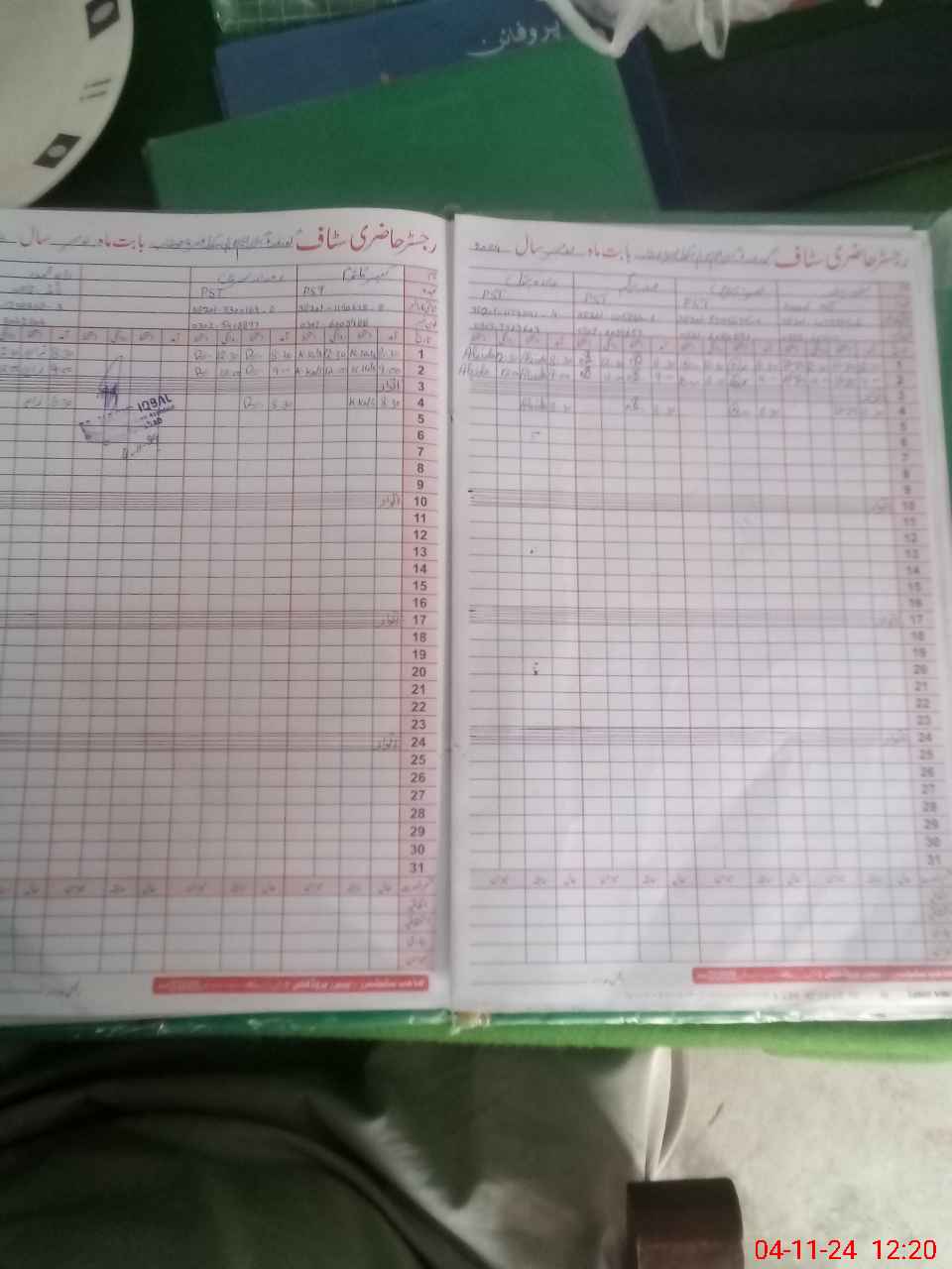| CNIC | Full Name | Designation | R/C | Absence During Last Calender Month |