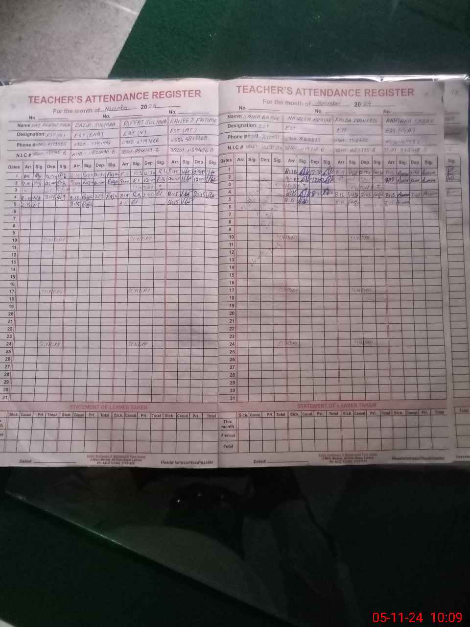 | CNIC | Full Name | Designation | R/C | Absence During Last Calender Month |