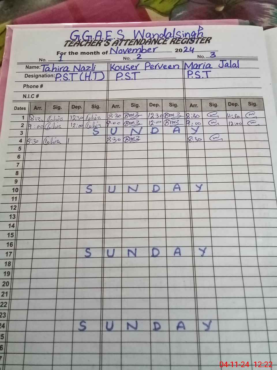 | Name: TA**** NA**** Designation: (School Headmaster's/Headmistress's) PST Phone/Cell Number: 03**** |