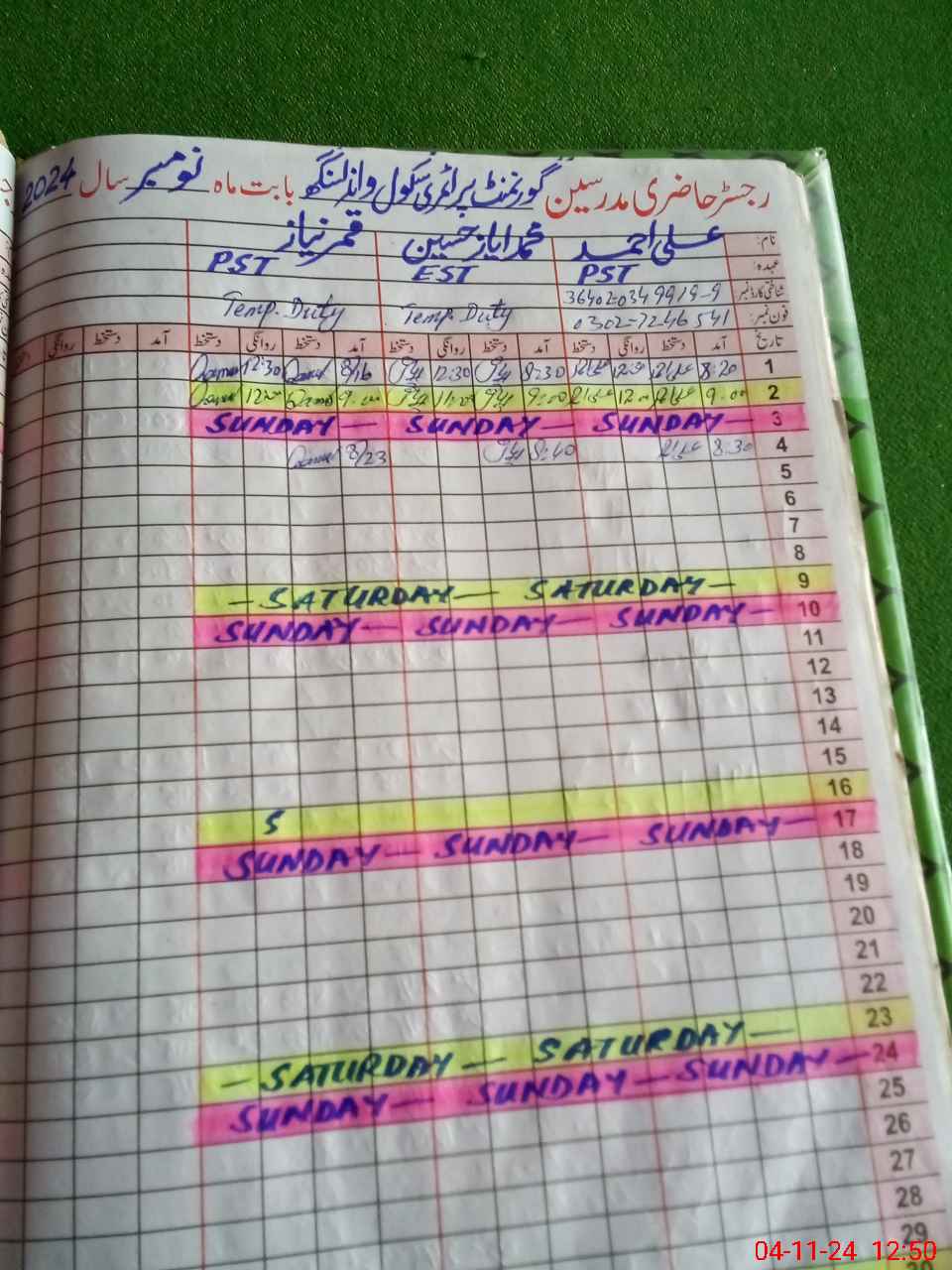 | Name: Al**** Ah**** Designation: (School Headmaster's/Headmistress's) PST Phone/Cell Number: 03**** |