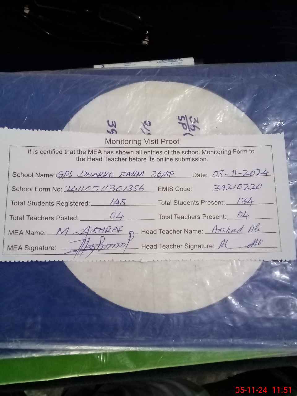 | Attendance Register | Head Teacher | MEA with School | Visit Proof |