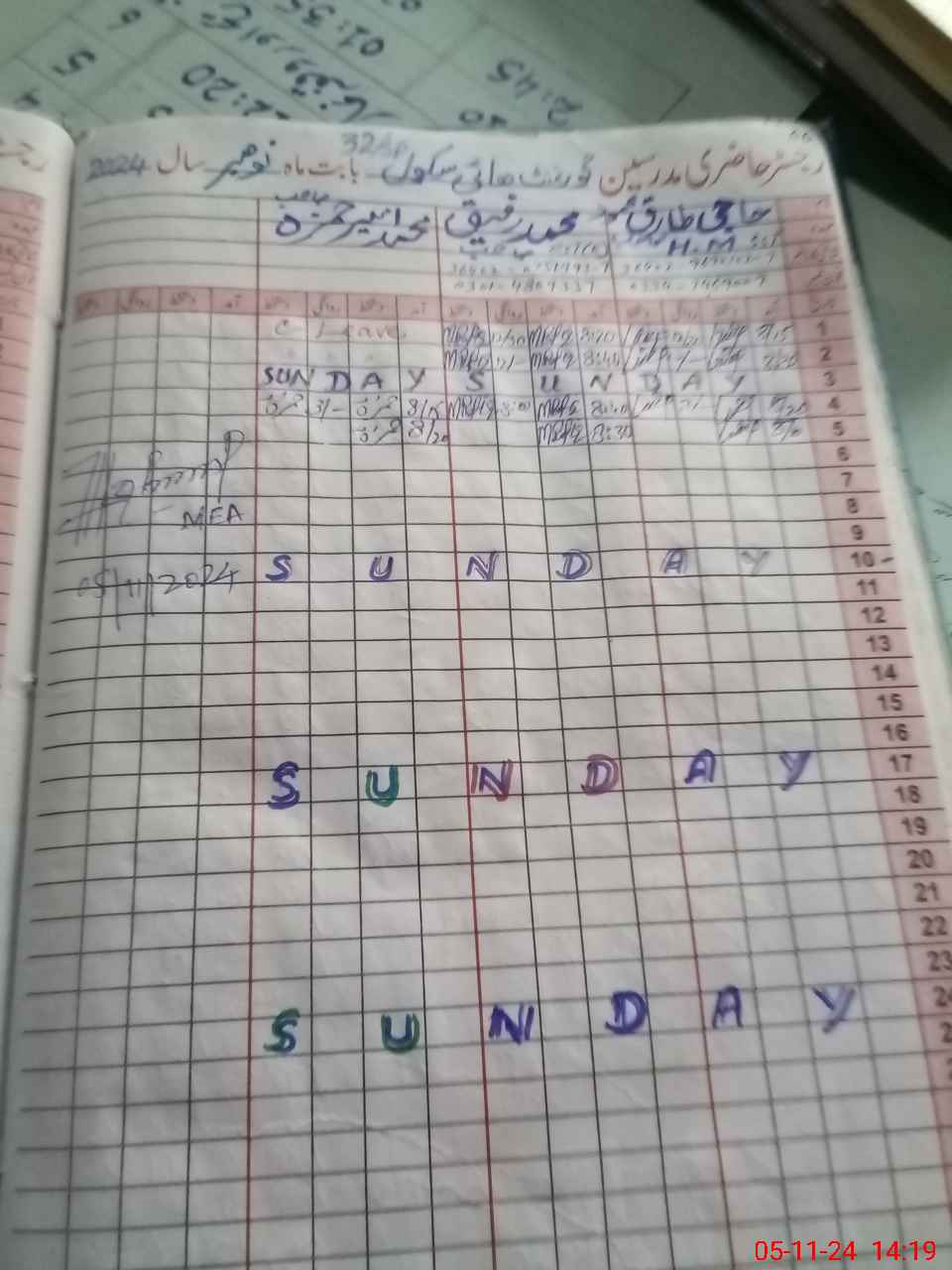 | Name: Sy**** Ma**** Al**** Sh**** Designation: (School Headmaster's/Headmistress's) HM ( OPS) Phone/Cell Number: 03**** |