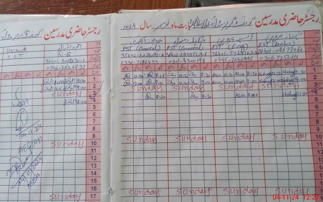 | CNIC | Full Name | Designation | R/C | Absence During Last Calender Month |