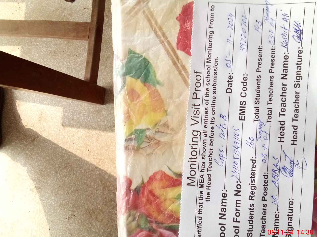 | Attendance Register | Head Teacher | MEA with School | Visit Proof |