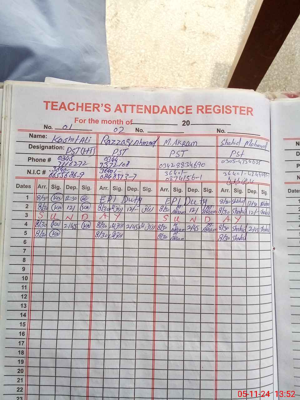 | Name: Ka**** Al**** Designation: (School Headmaster's/Headmistress's) PST Phone/Cell Number: 03**** |