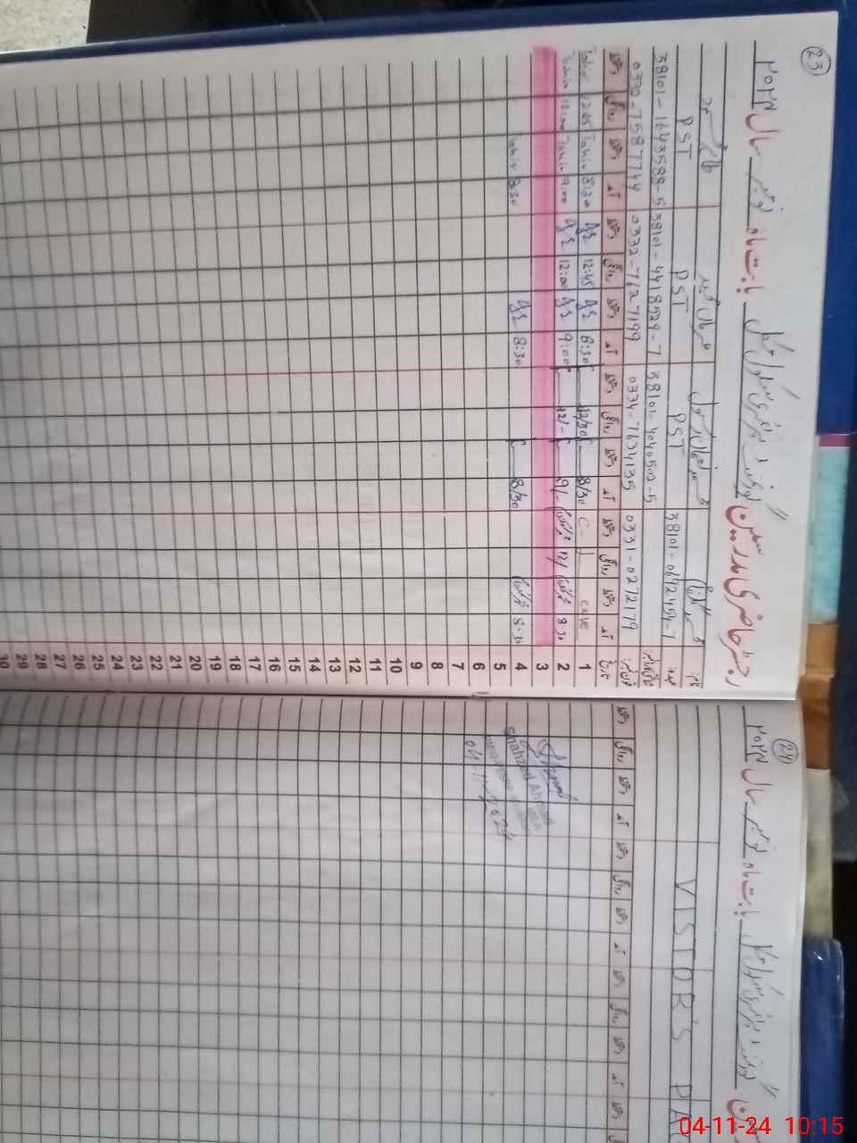 | CNIC | Full Name | Designation | R/C | Absence During Last Calender Month |
