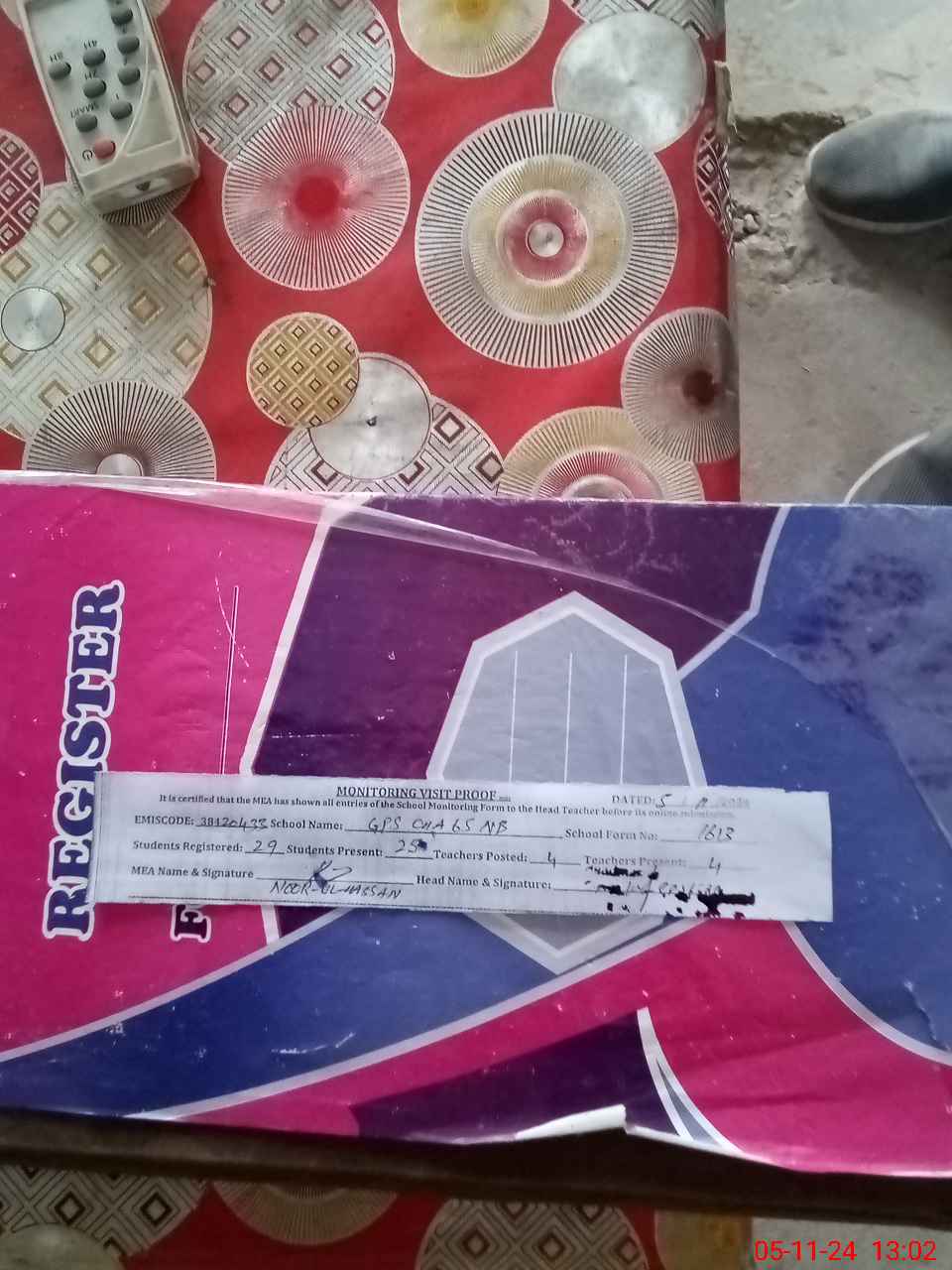 | Attendance Register | Head Teacher | MEA with School | Visit Proof |