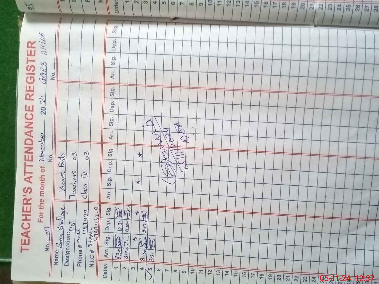 | CNIC | Full Name | Designation | R/C | Absence During Last Calender Month |