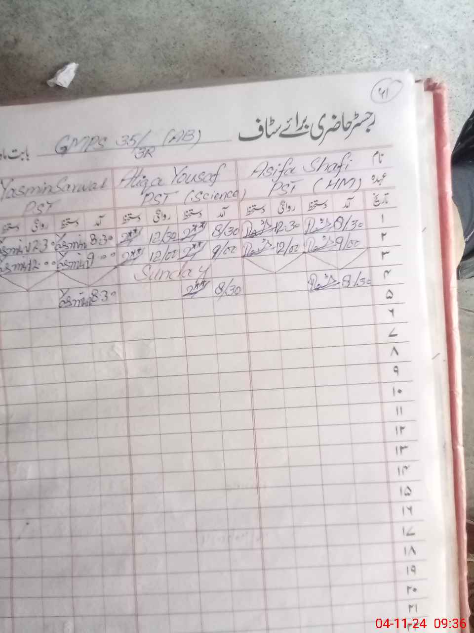 | CNIC | Full Name | Designation | R/C | Absence During Last Calender Month |