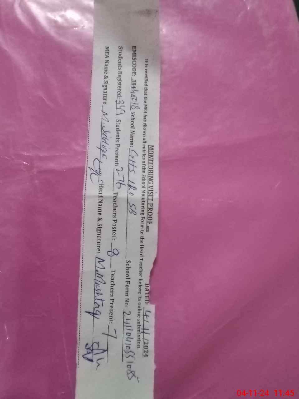 | Monitoring Date: 04-11-2024 | Start Time: 04-11-2024 10:55 AM | End Time: 04-11-2024 11:46 AM | Name of MEA: MU**** SI**** | |
