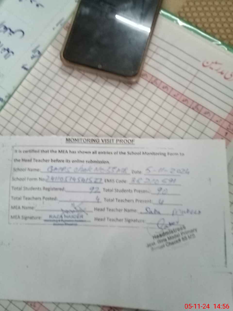 | EMIS Code: 38210591 | Name of School: GMPS CHAK NO. 55 MB | |||