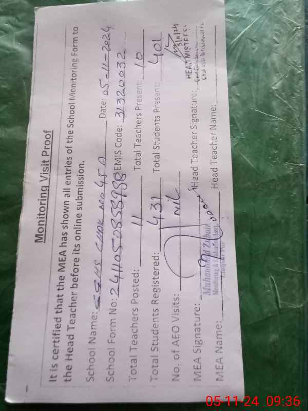 | EMIS Code: 31320032 | Name of School: GGHS CHAK NO. 45/A | |||