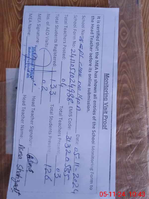 | Certified that this School was Inspected by the Undersigned MEA/DMO Today and the Information Stated Above is as Per Record. | |||||