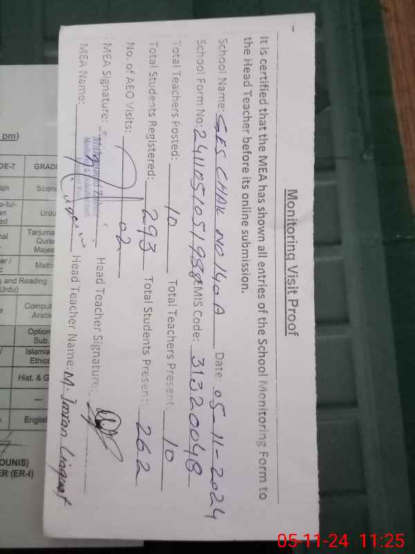 | Certified that this School was Inspected by the Undersigned MEA/DMO Today and the Information Stated Above is as Per Record. | |||||