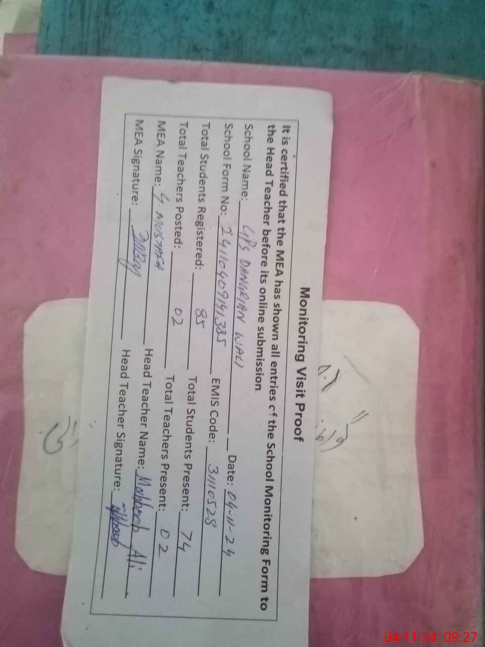 | EMIS Code: 31110528 | Name of School: GPS DANGRIAN WALI | |||