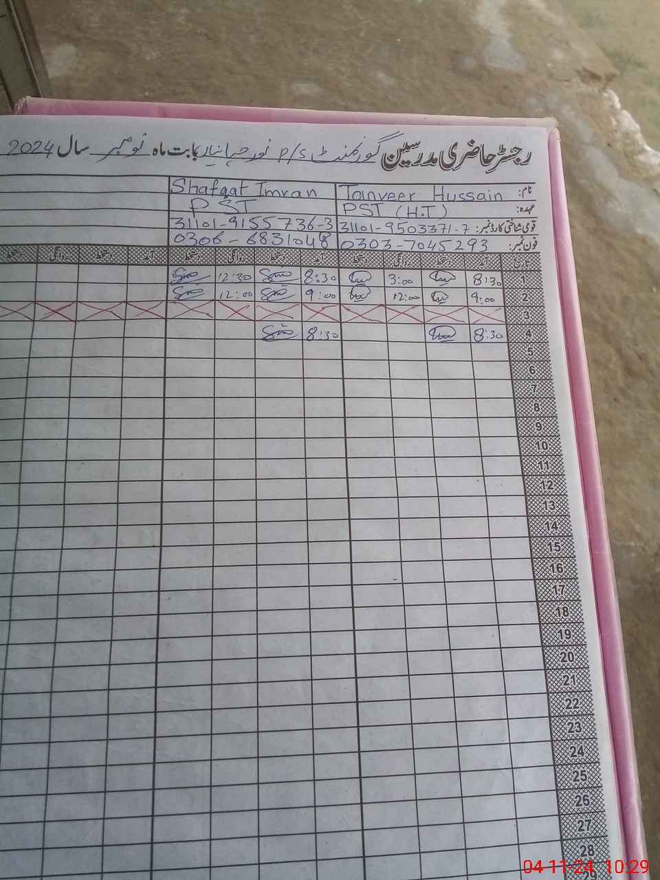 | Name: Ta**** Hu**** Designation: (School Headmaster's/Headmistress's) PST Phone/Cell Number: 03**** |