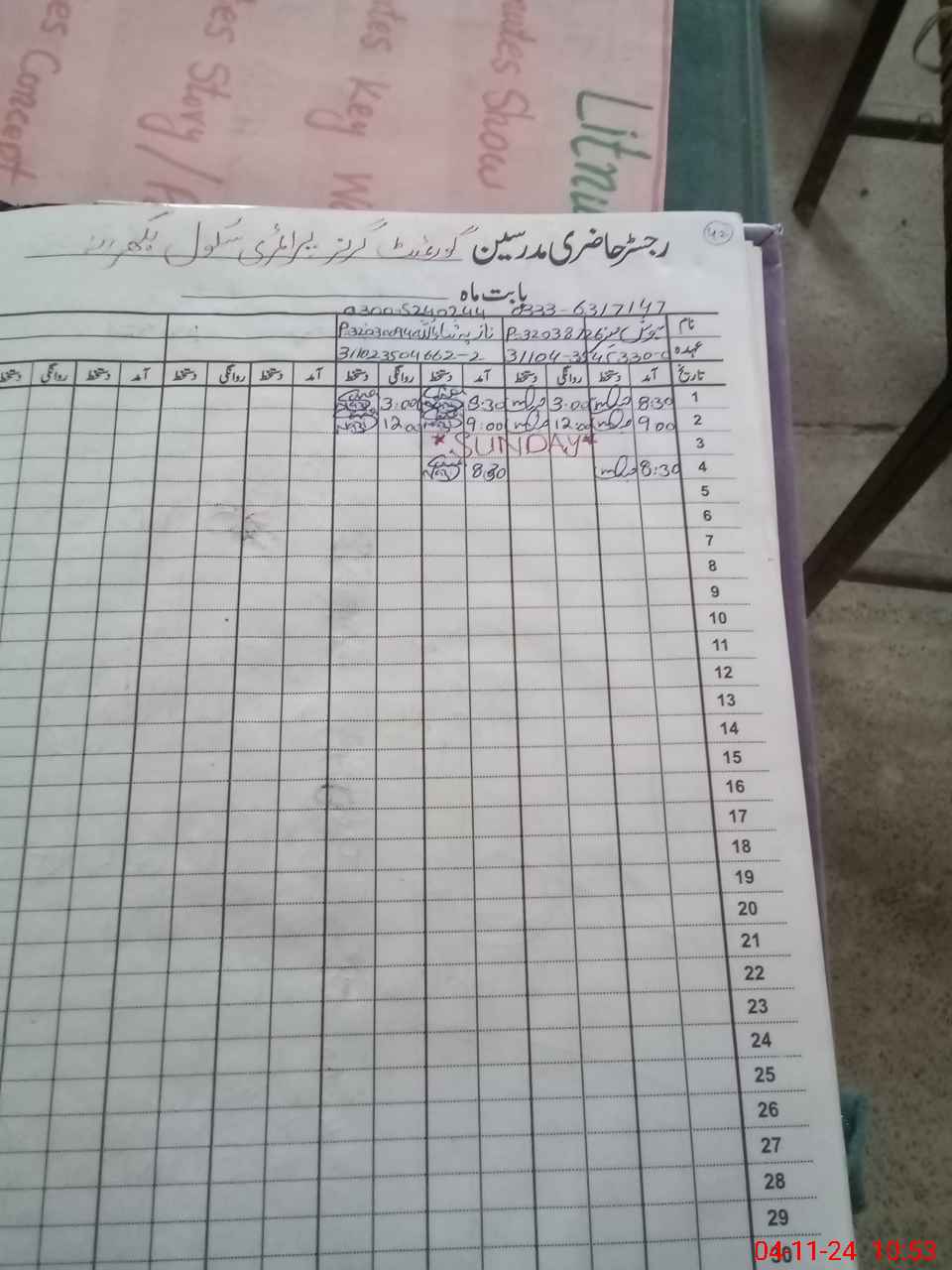 | CNIC | Full Name | Designation | R/C | Absence During Last Calender Month |
