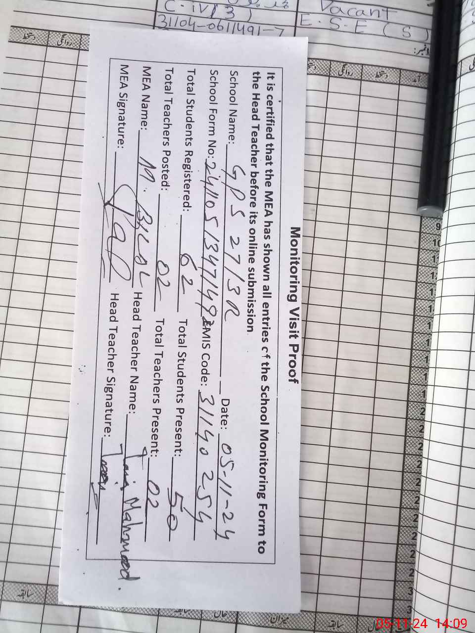 | EMIS Code: 31140254 | Name of School: GPS CHAK NO.27/3-R | |||