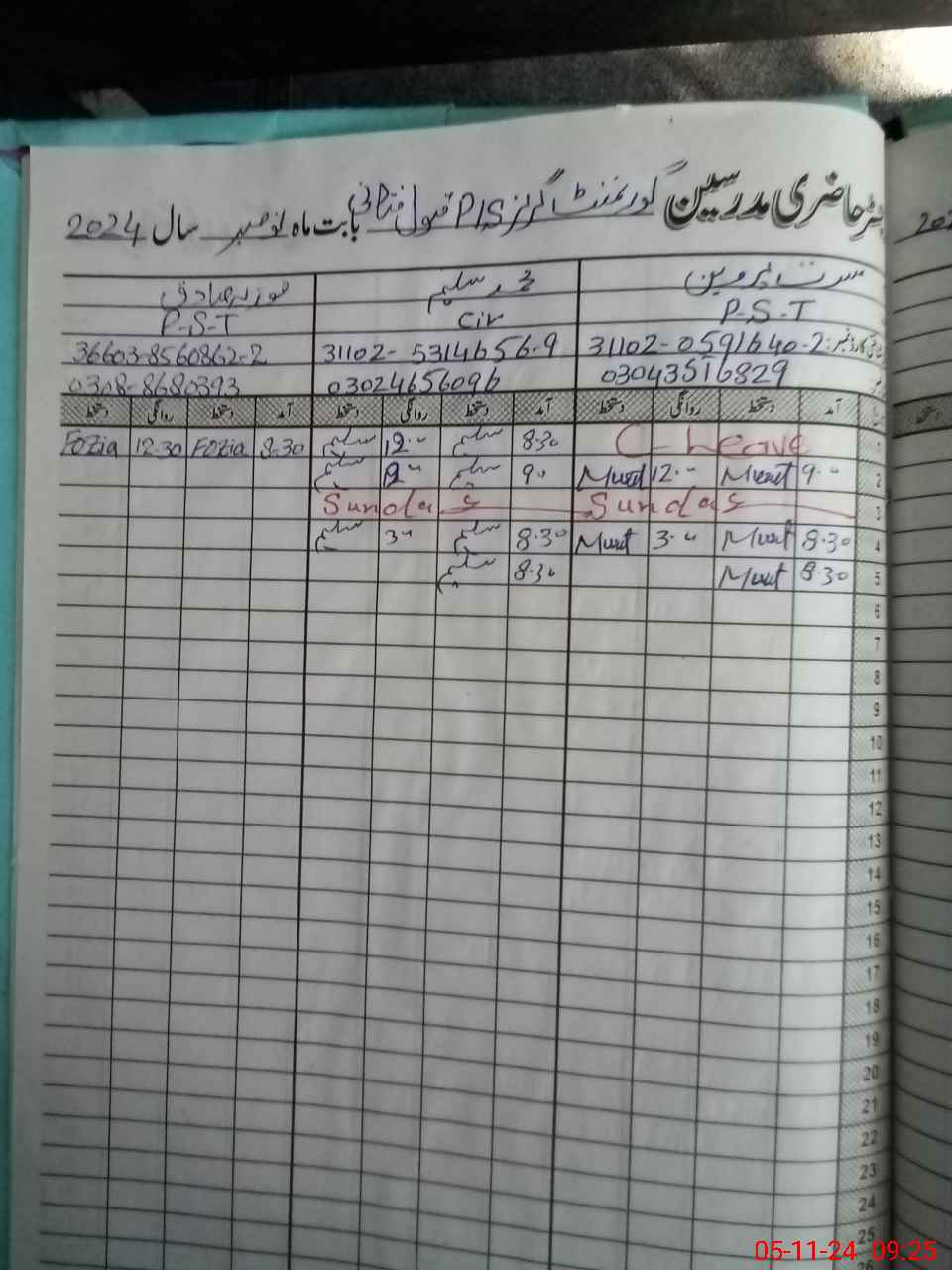 | Name: MU**** PE**** Designation: (School Headmaster's/Headmistress's) PST Phone/Cell Number: 03**** |