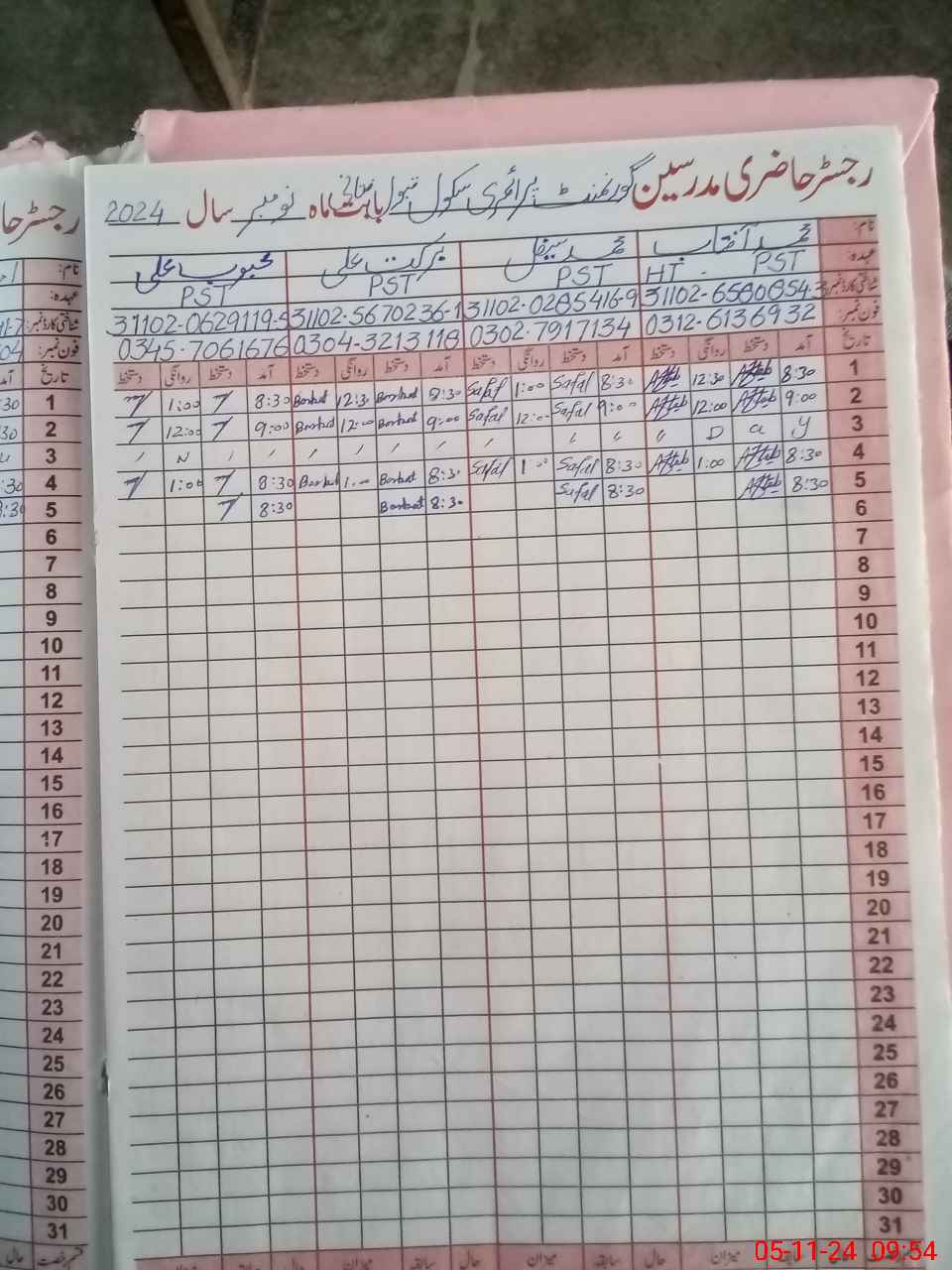 | Name: Mu**** Af**** Designation: (School Headmaster's/Headmistress's) P S T Phone/Cell Number: 03**** |