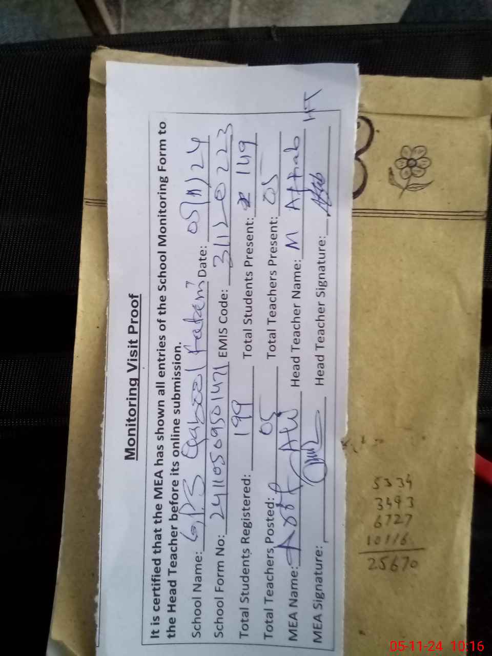 | EMIS Code: 31120223 | Name of School: GPS QABOOL FATANI | |||