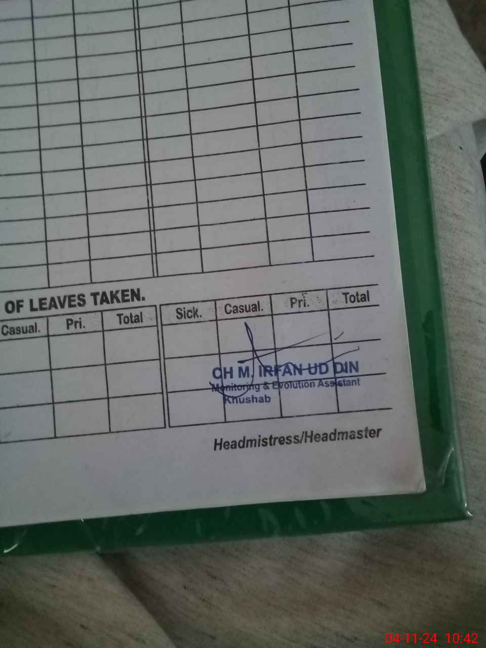| Attendance Register | Head Teacher | MEA with School | Visit Proof |