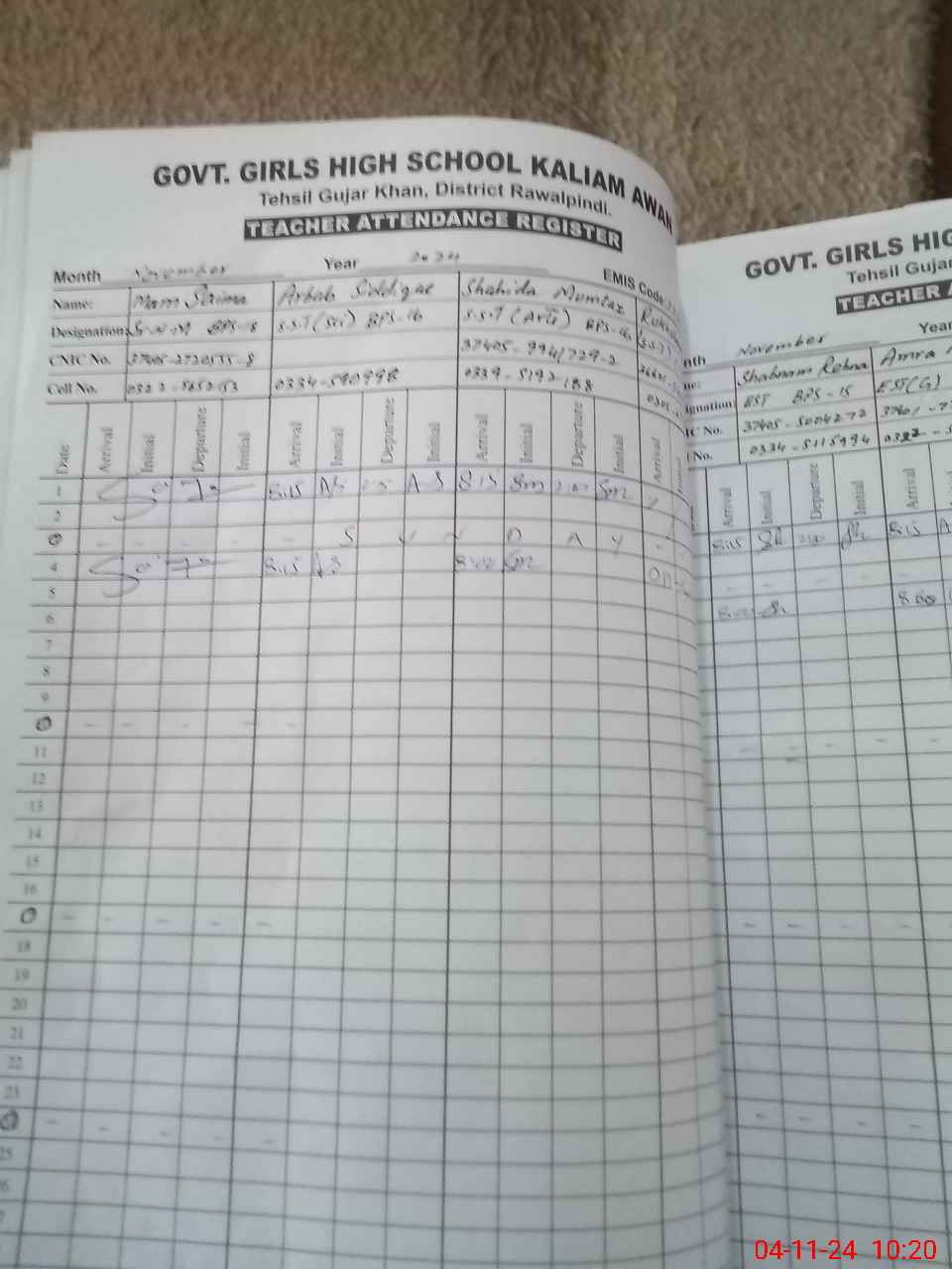 | CNIC | Full Name | Designation | R/C | Absence During Last Calender Month |