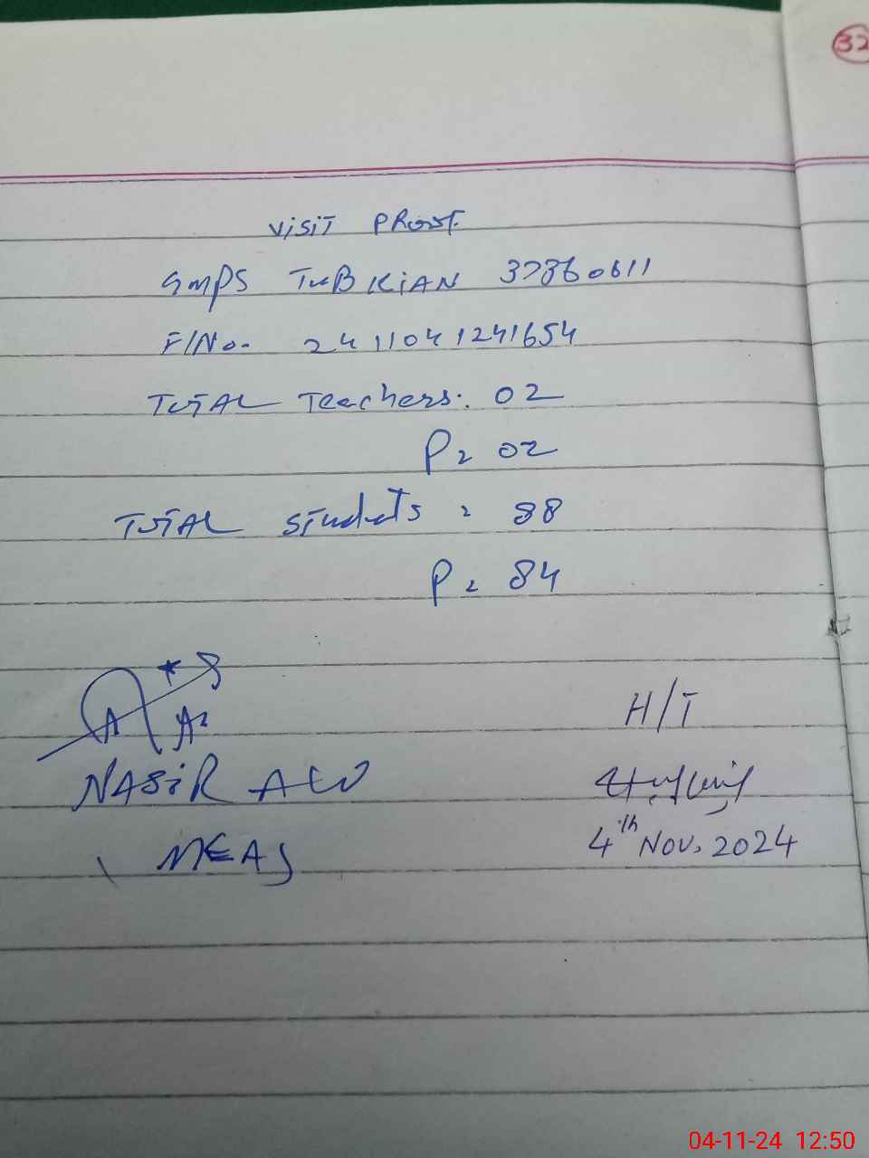 | Attendance Register | Head Teacher | MEA with School | Visit Proof |