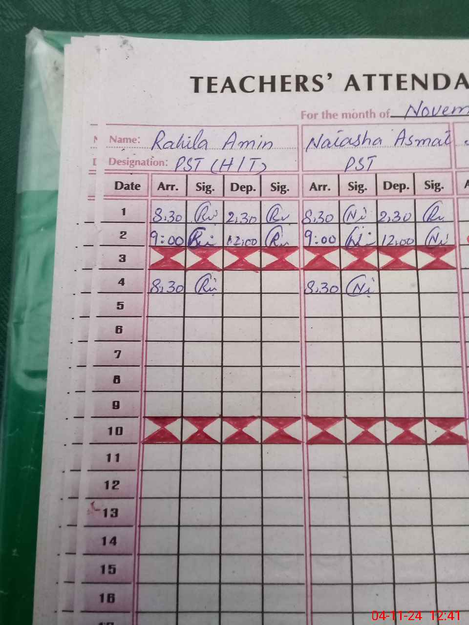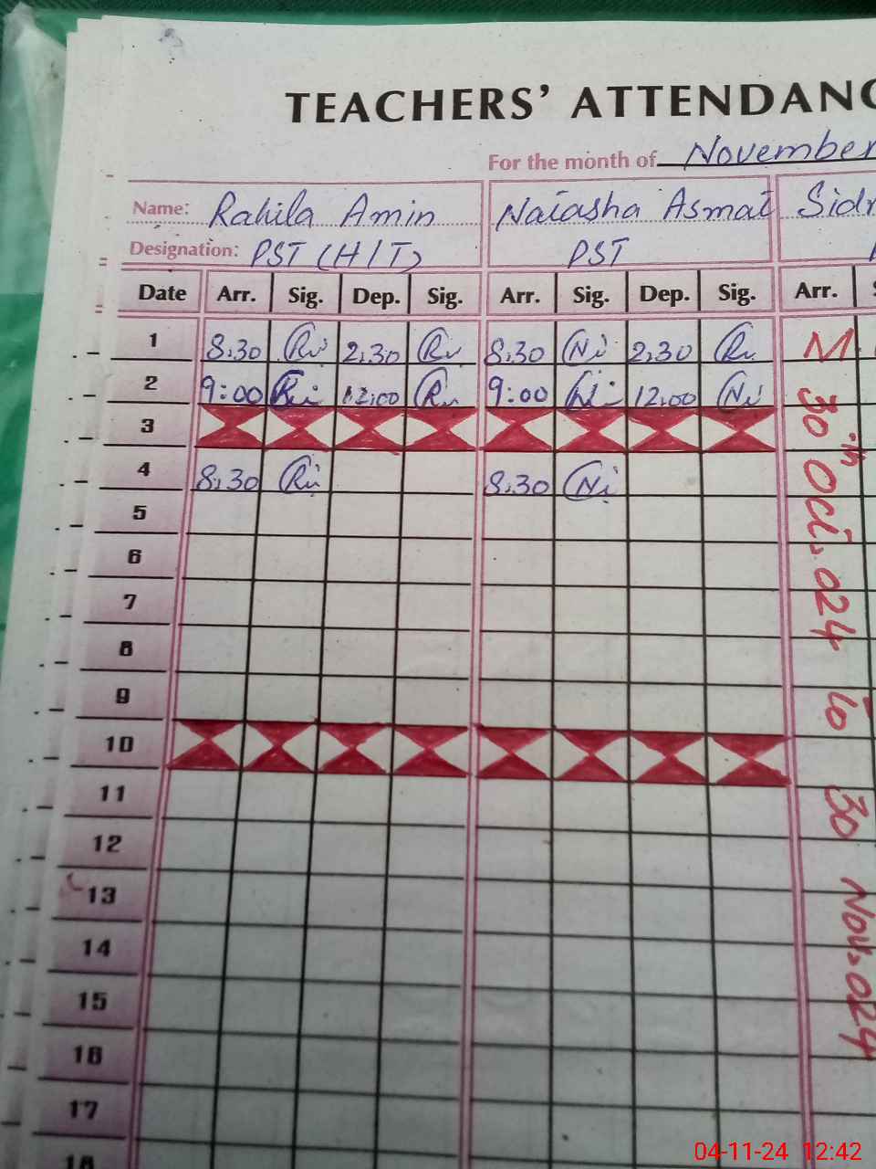 | CNIC | Full Name | Designation | R/C | Absence During Last Calender Month |