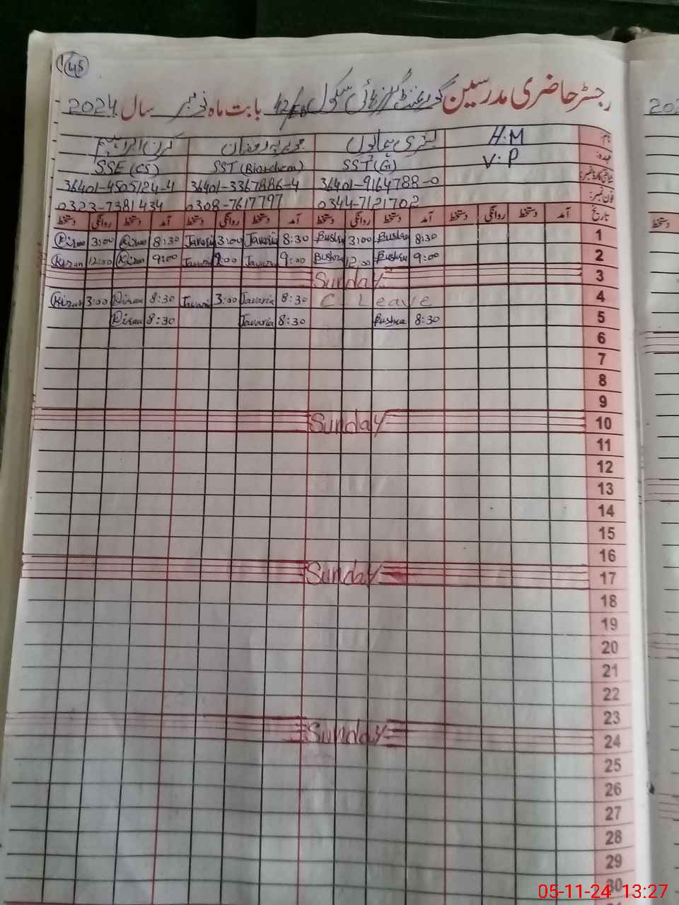 | Name: BU**** HA**** Designation: (School Headmaster's/Headmistress's) SST (GENERAL) Phone/Cell Number: 03**** |