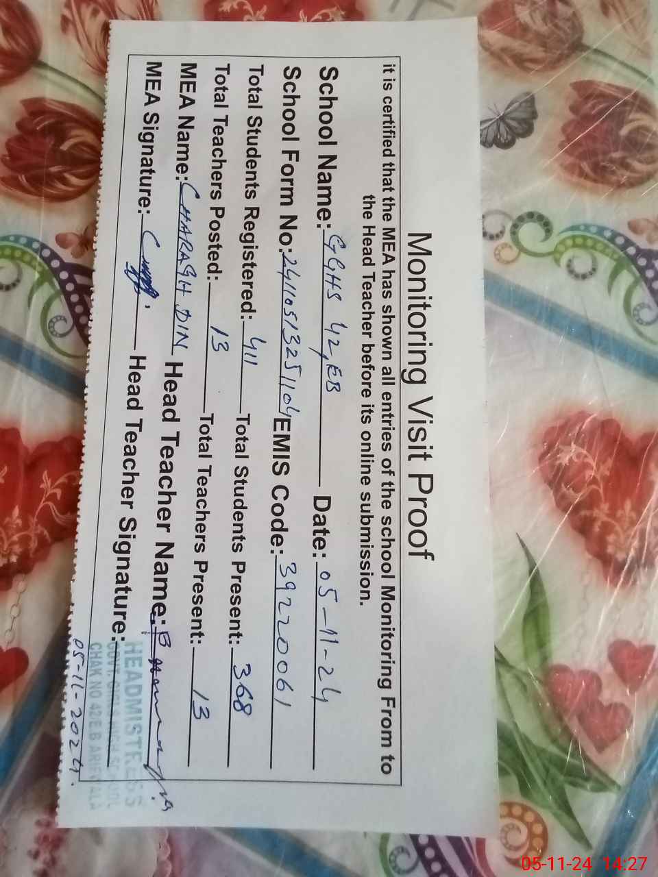 | EMIS Code: 39220061 | Name of School: GGHS 42 EB ARIFWALA | |||