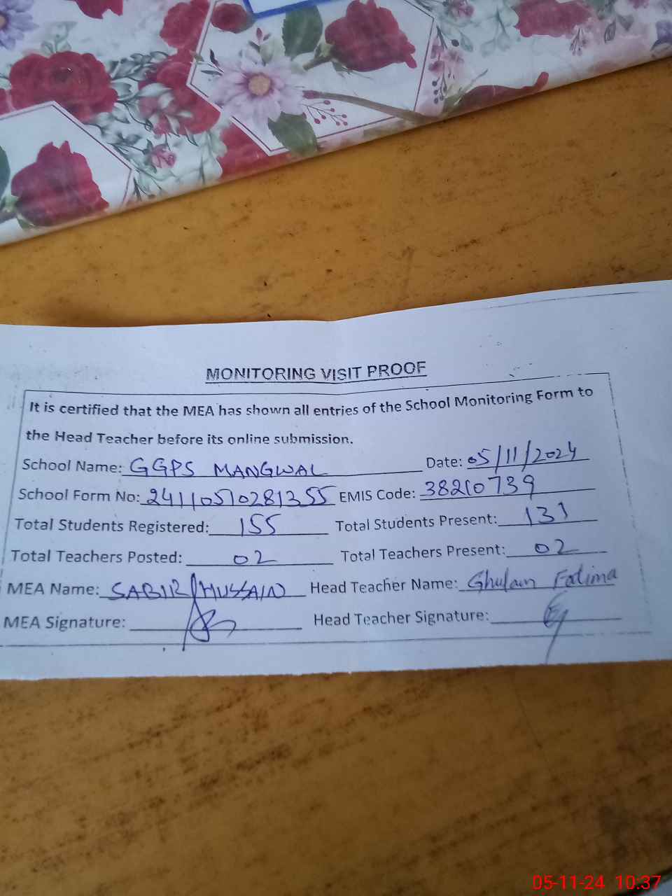 | EMIS Code: 38210739 | Name of School: GGPS MANGWAL | |||