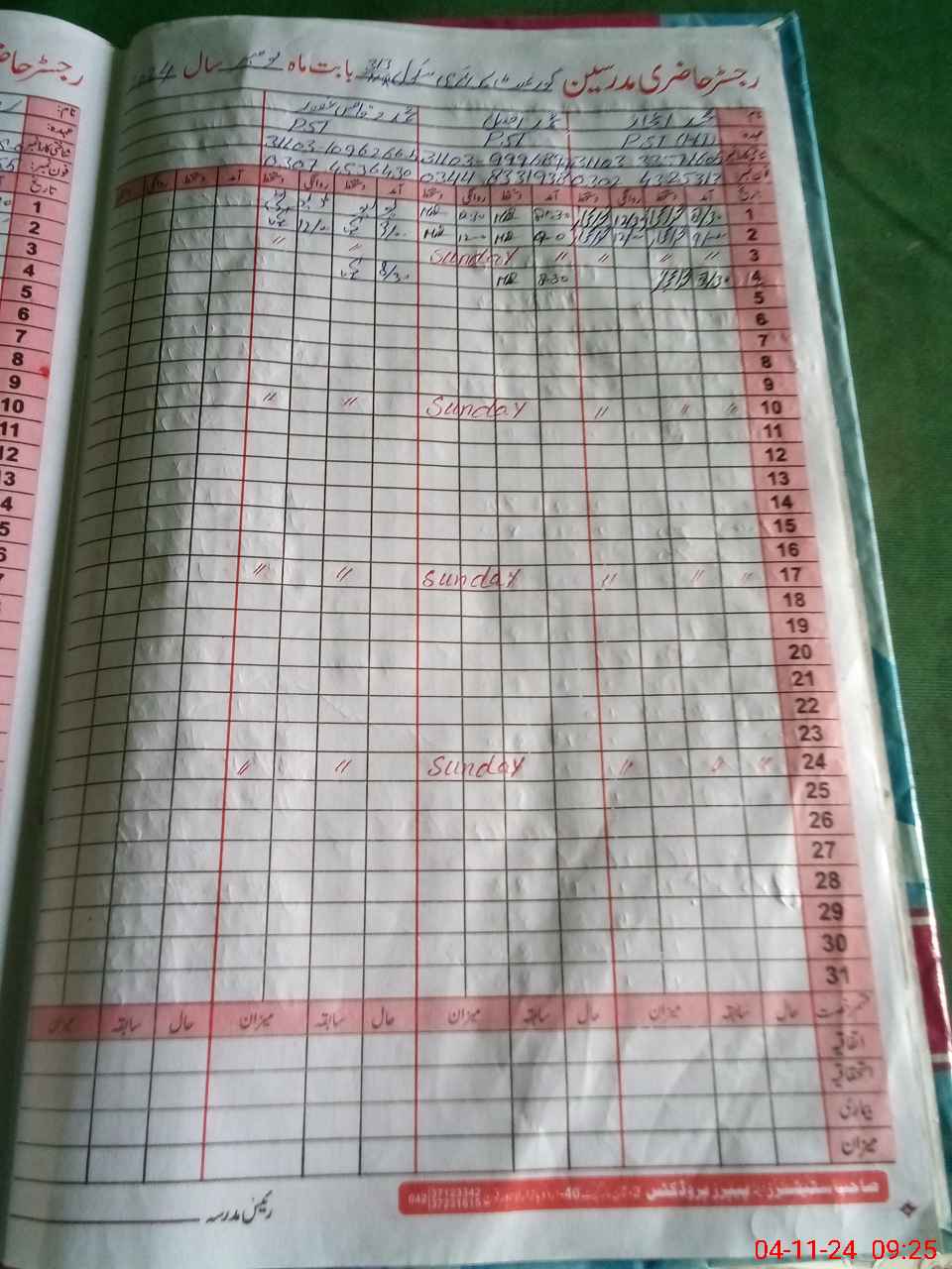 | CNIC | Full Name | Designation | R/C | Absence During Last Calender Month |