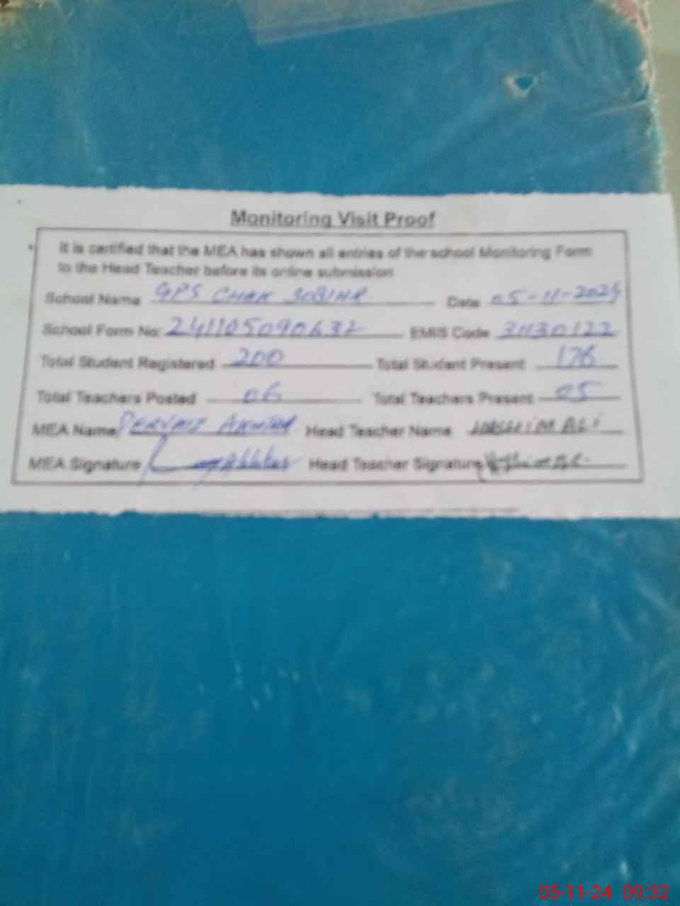 | EMIS Code: 31130122 | Name of School: GPS CHAK 308/HR SOUTH | |||