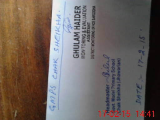| EMIS Code: 38430431 | Name of School: GMPS CHAK SHEIKHA | |||