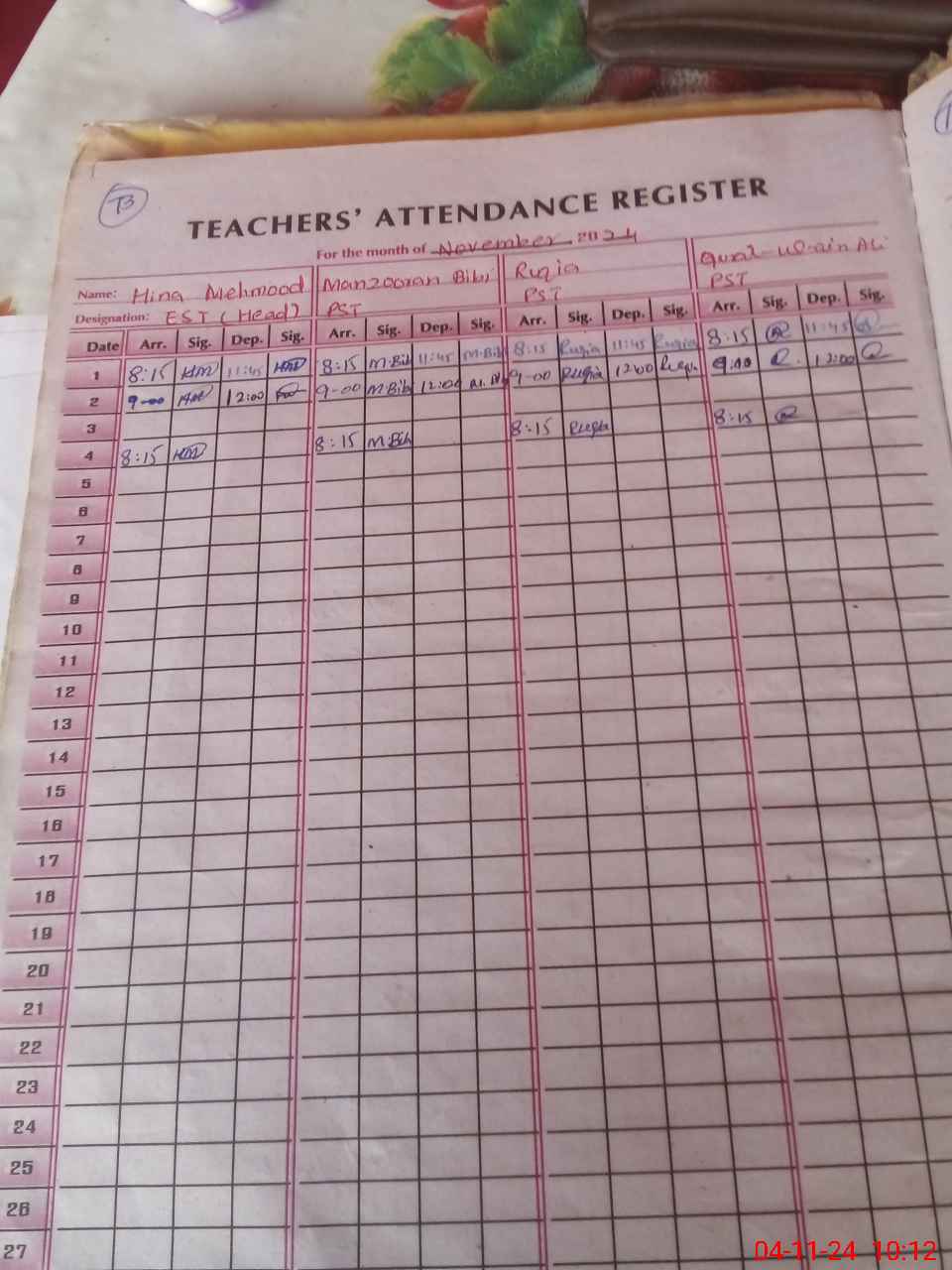 | Name: Hi**** Me**** Designation: (School Headmaster's/Headmistress's) PST Phone/Cell Number: 03**** |