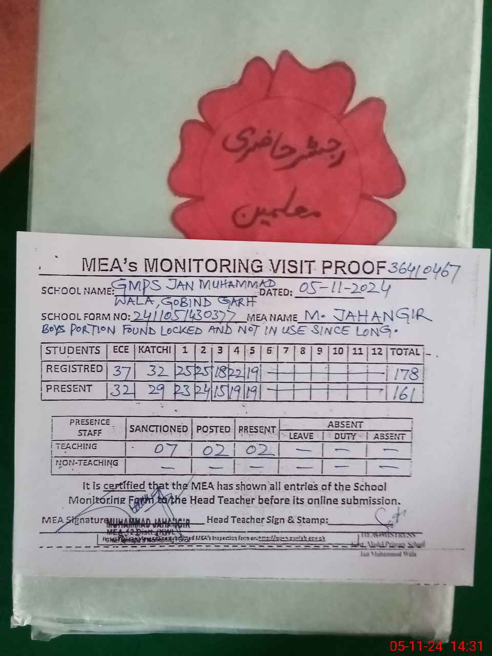 | EMIS Code: 36410467 | Name of School: GMPS JAN MUHAMMAD WALA ABDUL HAKIM | |||